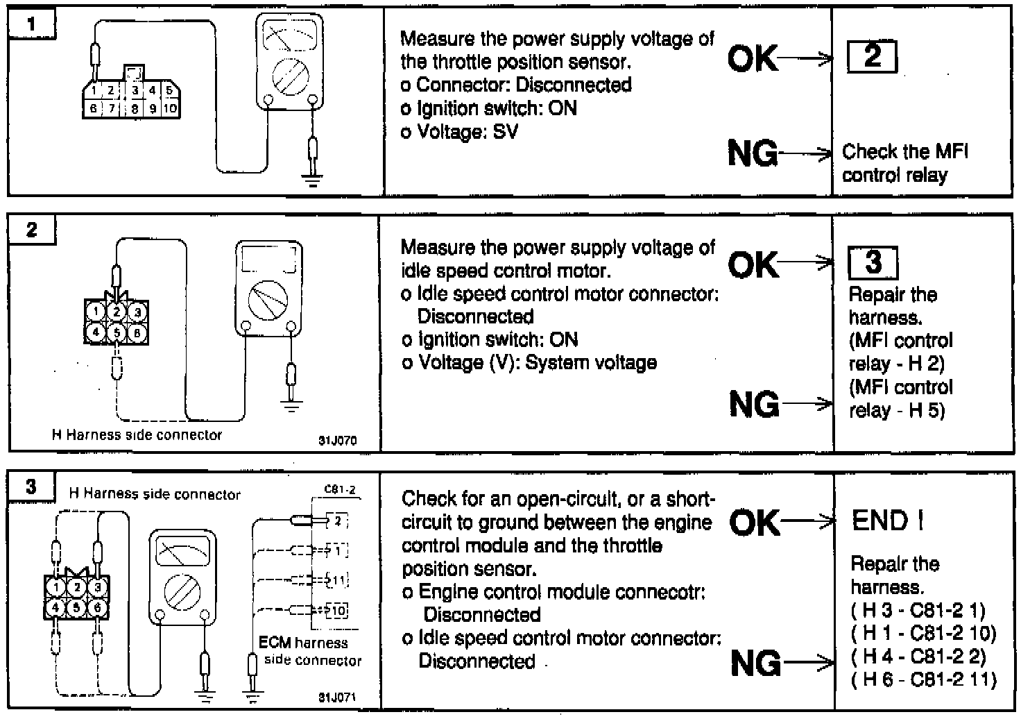2. It the operation sound cannot be heard, check the stepper motor's circuit.
