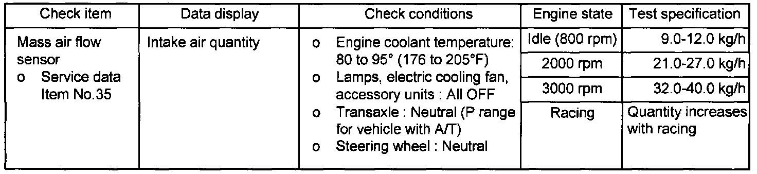 NOTE: When the vehicle is new [within initial operation of about 500 km (300 miles)], the mass air flow sensor air quantity may be about 10% higher.