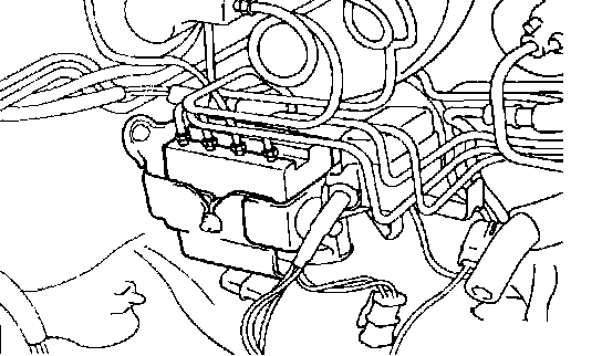 The modulator consists of four solenoid valves, one expander chamber per brake circuit and a hydraulic pump. The ABSCM activates the solenoid valves and controls the pressure to the wheel calipers.