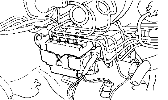 The modulator consists of four solenoid valves, one expander chamber per brake circuit and a hydraulic pump. The ABSCM activates the solenoid valves and controls the pressure to the wheel calipers.