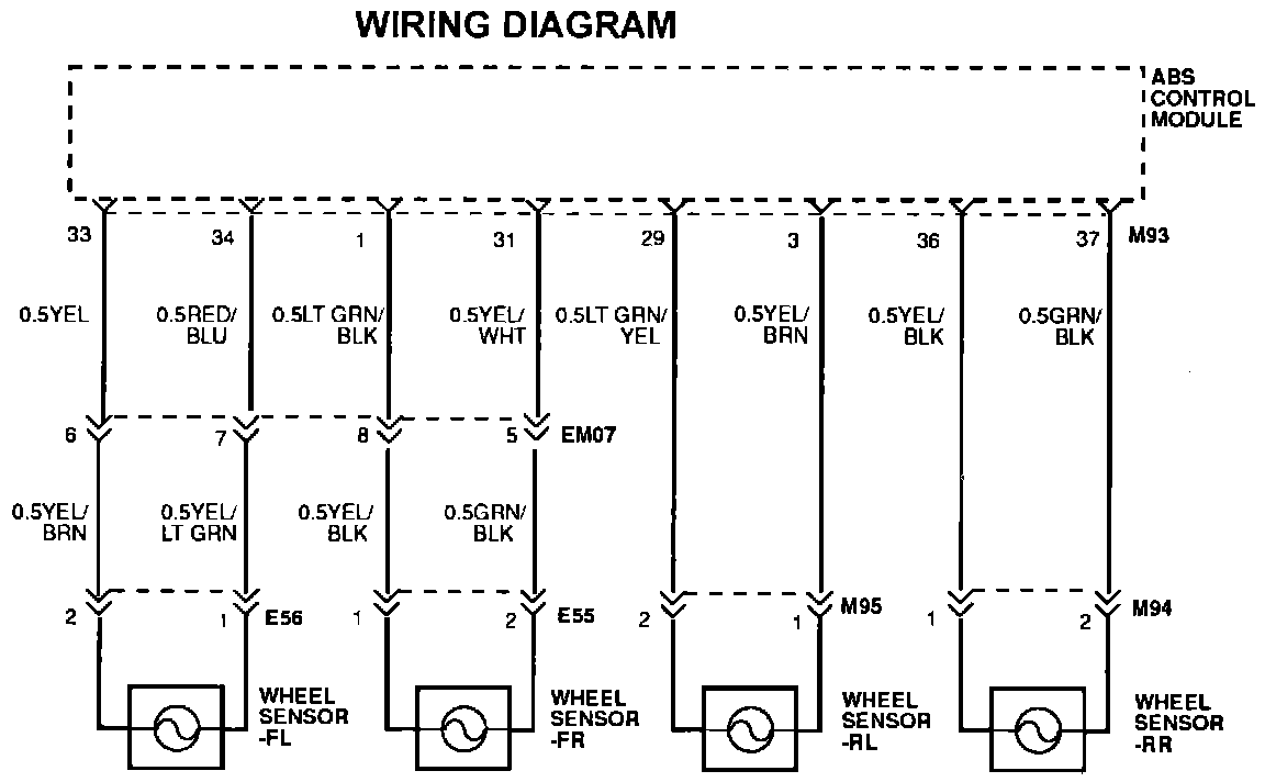 At each wheel hub there is a tone wheel and an inductive sensor which supplies the wheel speed information to the ABSCM The sensor comprises a magnet and a pole piece surrounded by a coil. When the tone wheel rotates adjacent to the sensor pole piece an alternating current signal is generated in the coil with a frequency proportioned to wheel speed. A special integrated circuit in the ABSCM translates the generated AC signal to a square wave. This square wave is used by the microprocessor to operate the ABS.