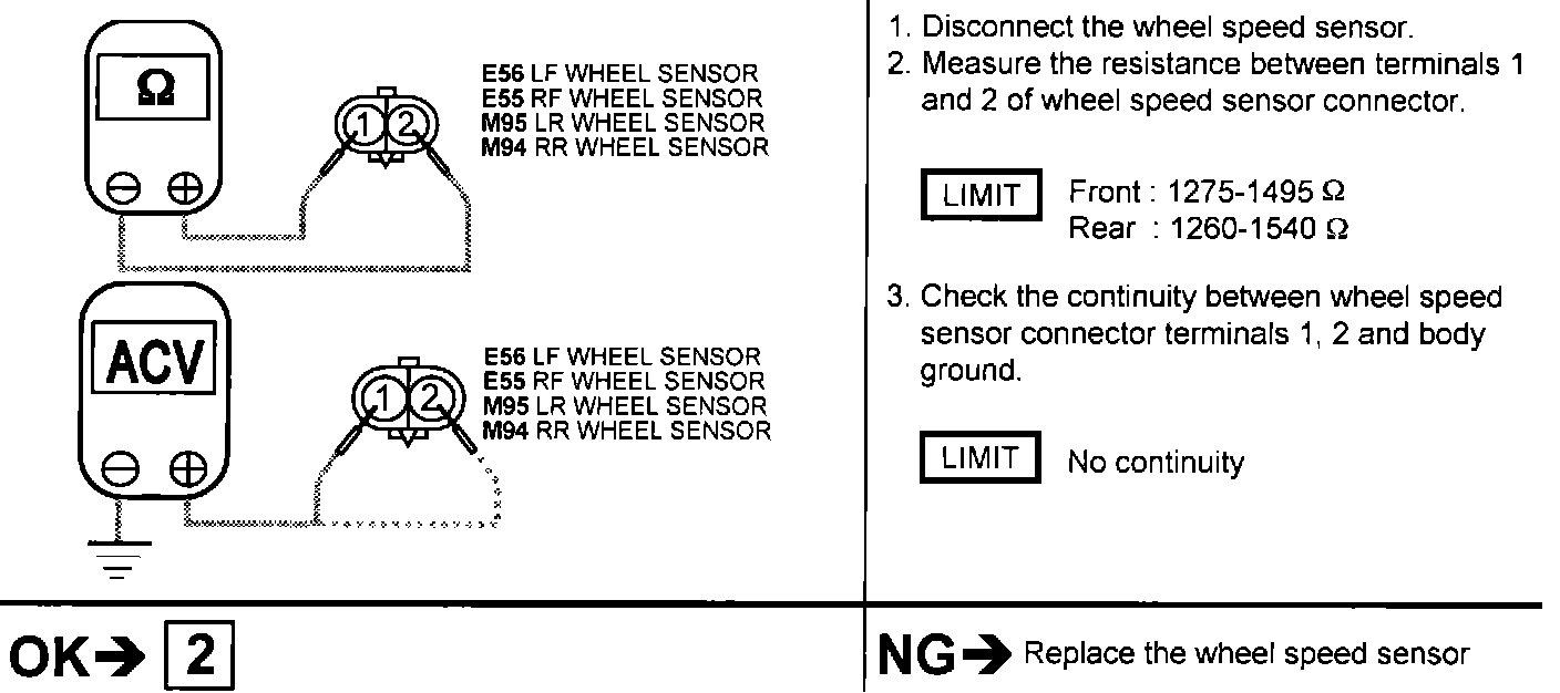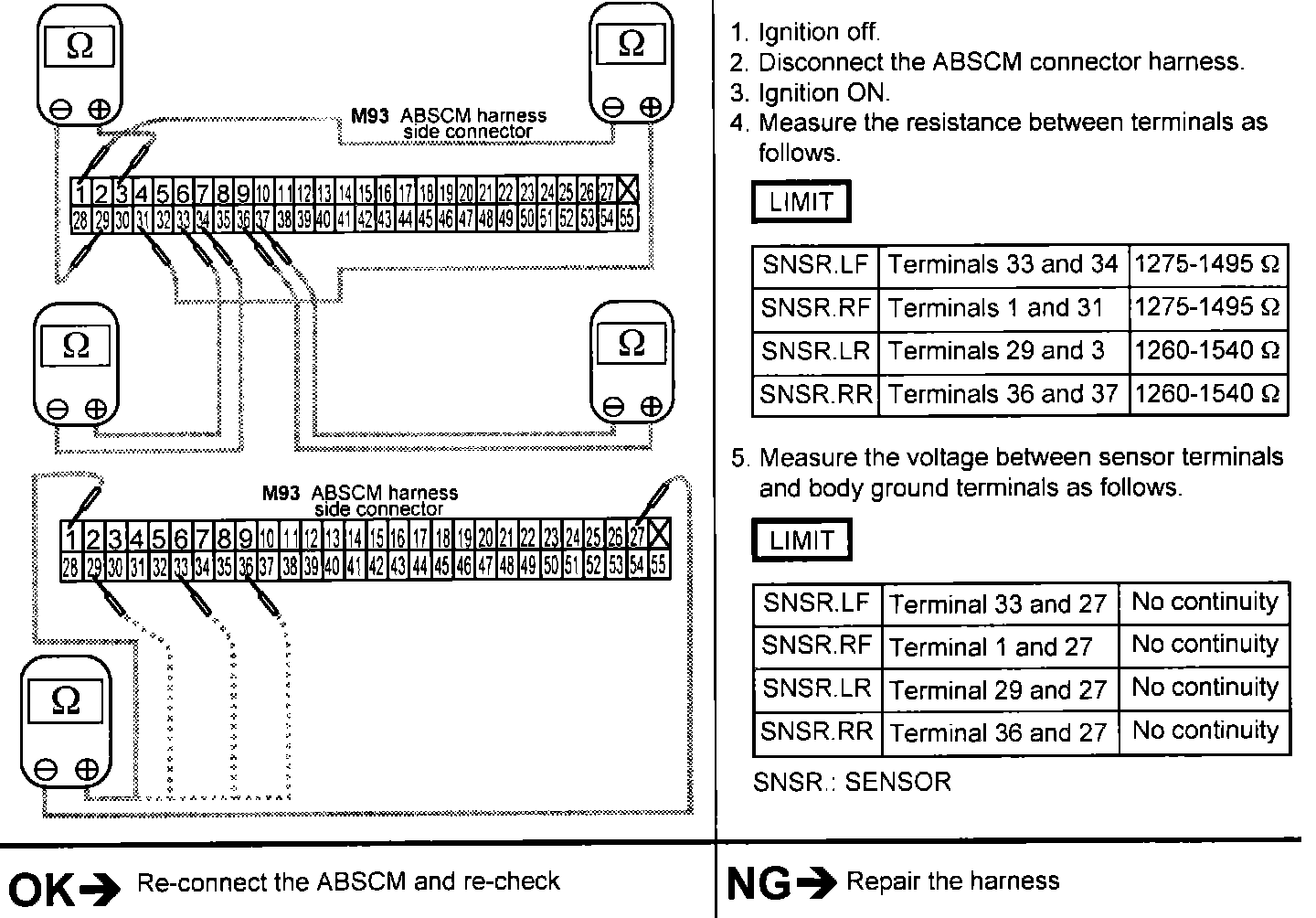 3. Check the harness and the connector between the ABSCM and each wheel speed sensor