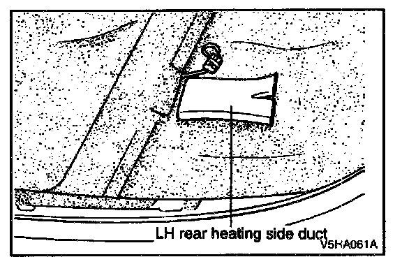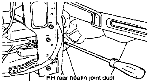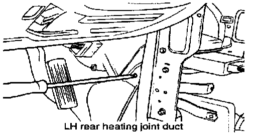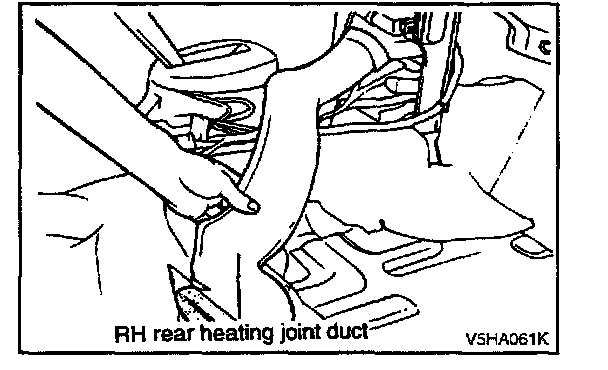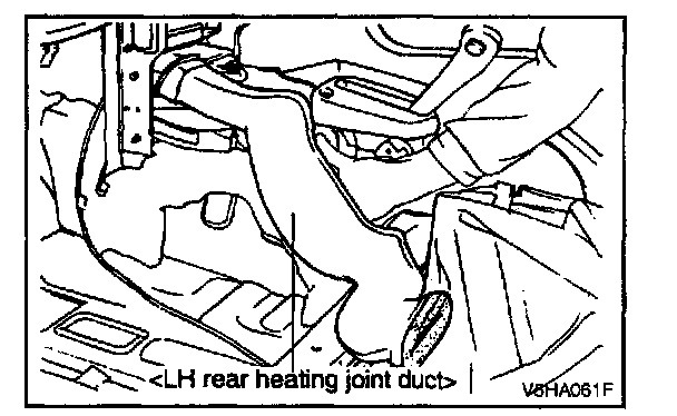 6. Turn over the carpet and disconnect the rear heating joint duct (LH) from the heater unit.