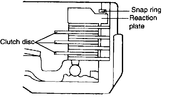 1. Remove the snap ring, clutch reaction plate, clutch disc, and the clutch plate. If the disc and plate are reused, note the installation order and direction when they are disassembled.