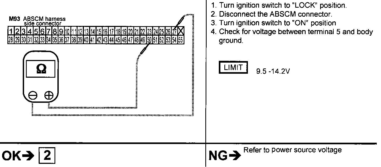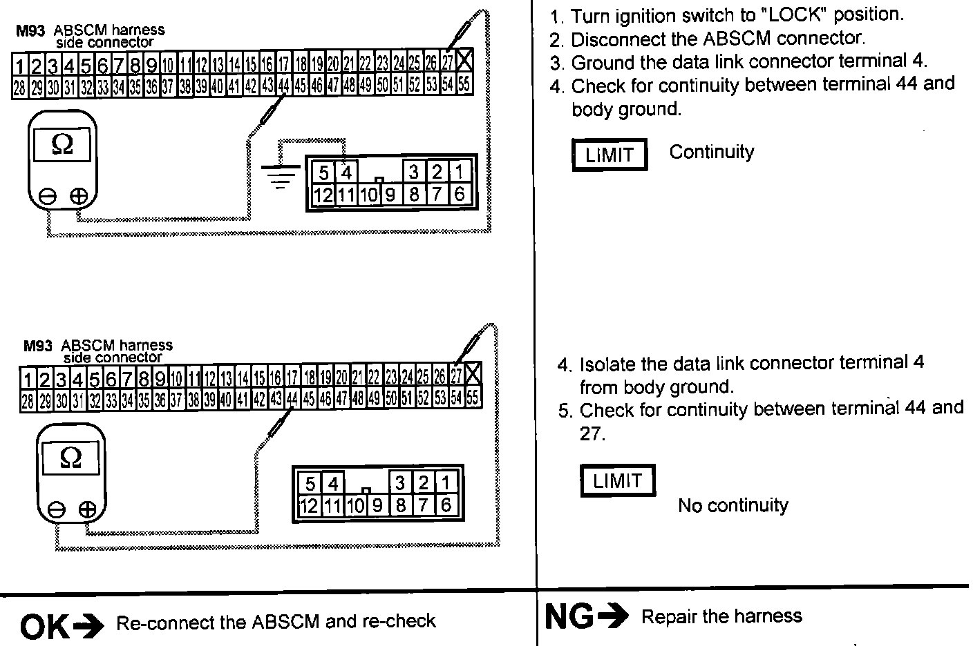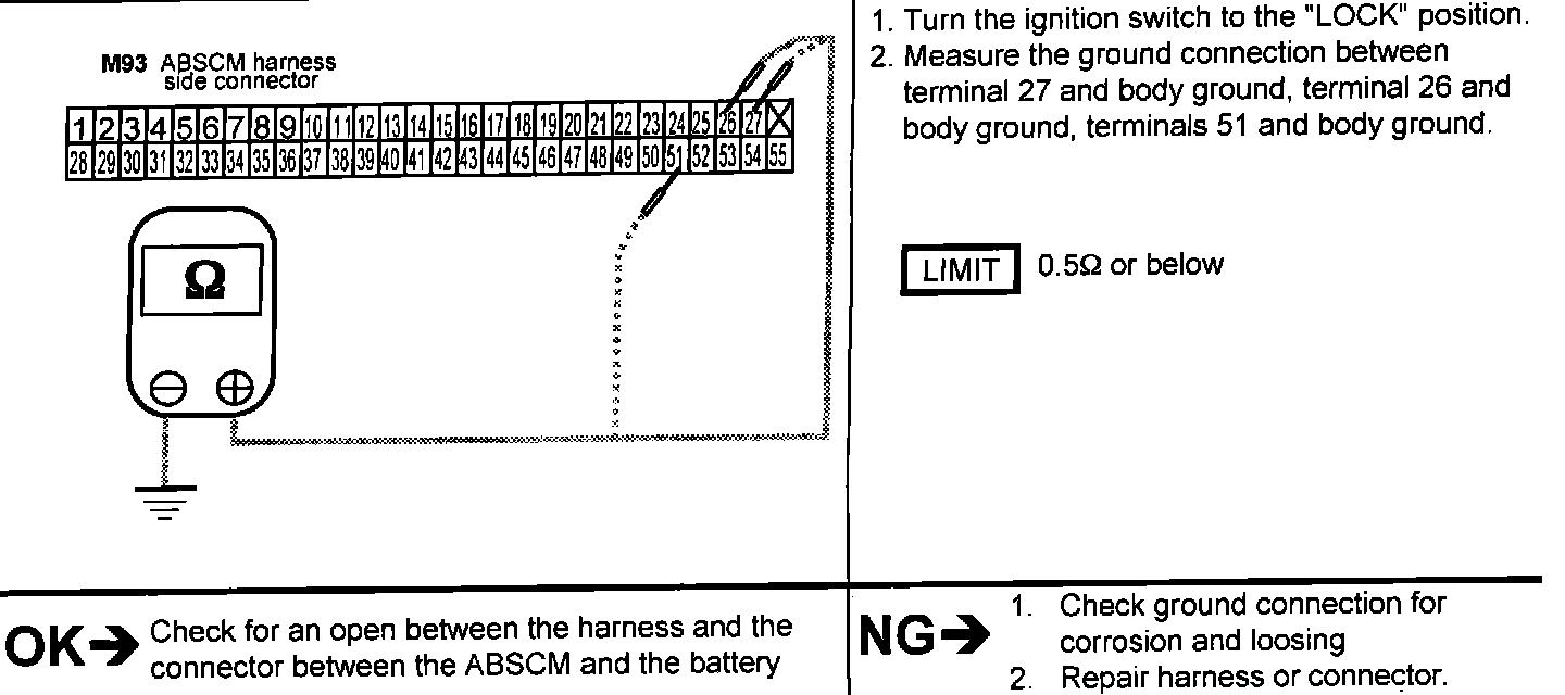 2. Check continuity between the ABSCM connector GND and Body GND.