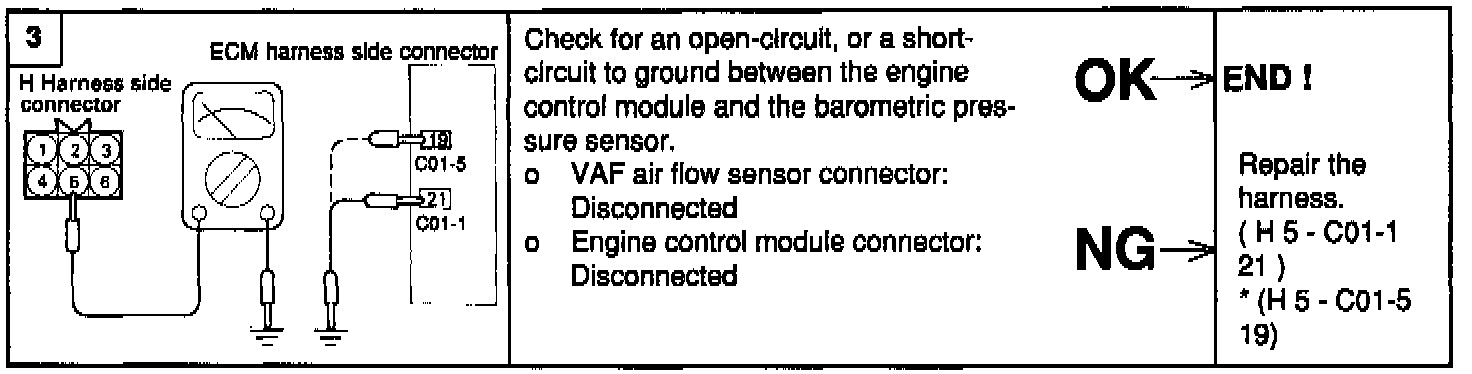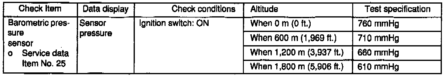 2. If the pressure of the barometric pressure sensor drops greatly during high speed driving, check the air cleaner of clogging.