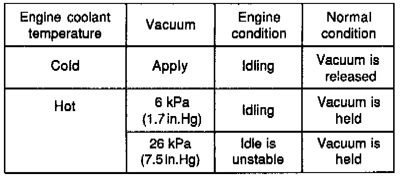 2. Check the following points when the engine is both cold (engine coolant temperature 5O°C (122°F) or below) and hot (engine coolant temperature 80-95°C (176-2O5°F) or higher).