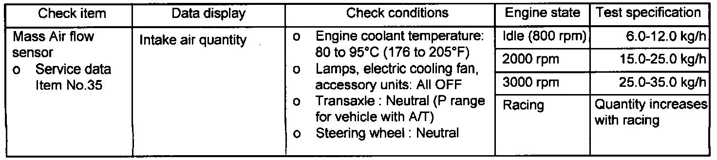NOTE: When the vehicle is new [within initial operation of about 500 km (300 miles)], the mass air flow sensor air quantity may be about 10% higher.