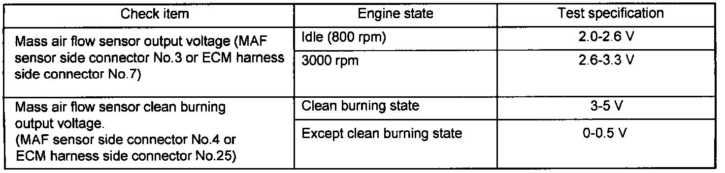 3. If the engine can be idle even if the MAF sensor output voltage is out of specification, check for the following conditions;