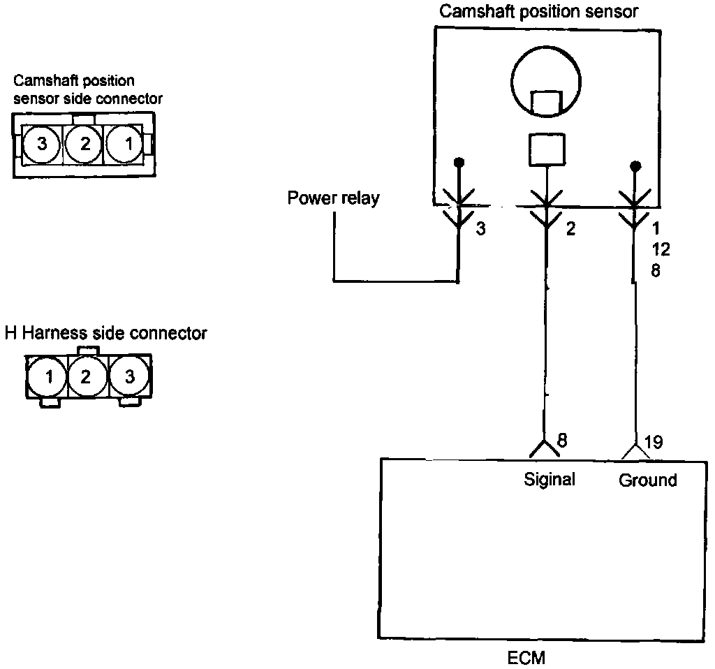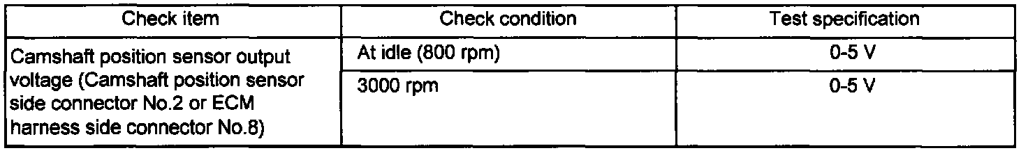 If the camshaft position sensor does not operate correctly, correct sequential injection is not made so that the engine may stall or run irregularly at idle or fail to accelerate normally.
