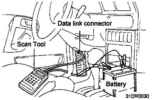 1. Turn OFF the ignition switch.2. Connect the scan tool to the data link connector in the fuse box.