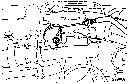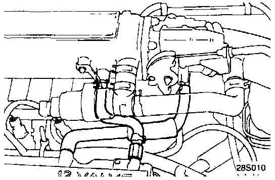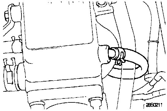 7. Disconnect the high pressure fuel hose connection after relieving pressure in the fuel pipe line to prevent fuel overflow.