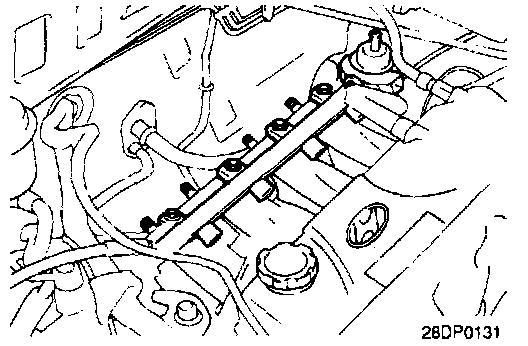 CAUTION: Be careful not to drop the injectors when removing the delivery pipe.