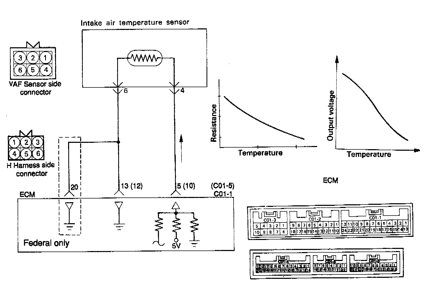4. If the value deviates from the standard value or the resistance remains unchanged, replace the volume air flow sensor assembly.