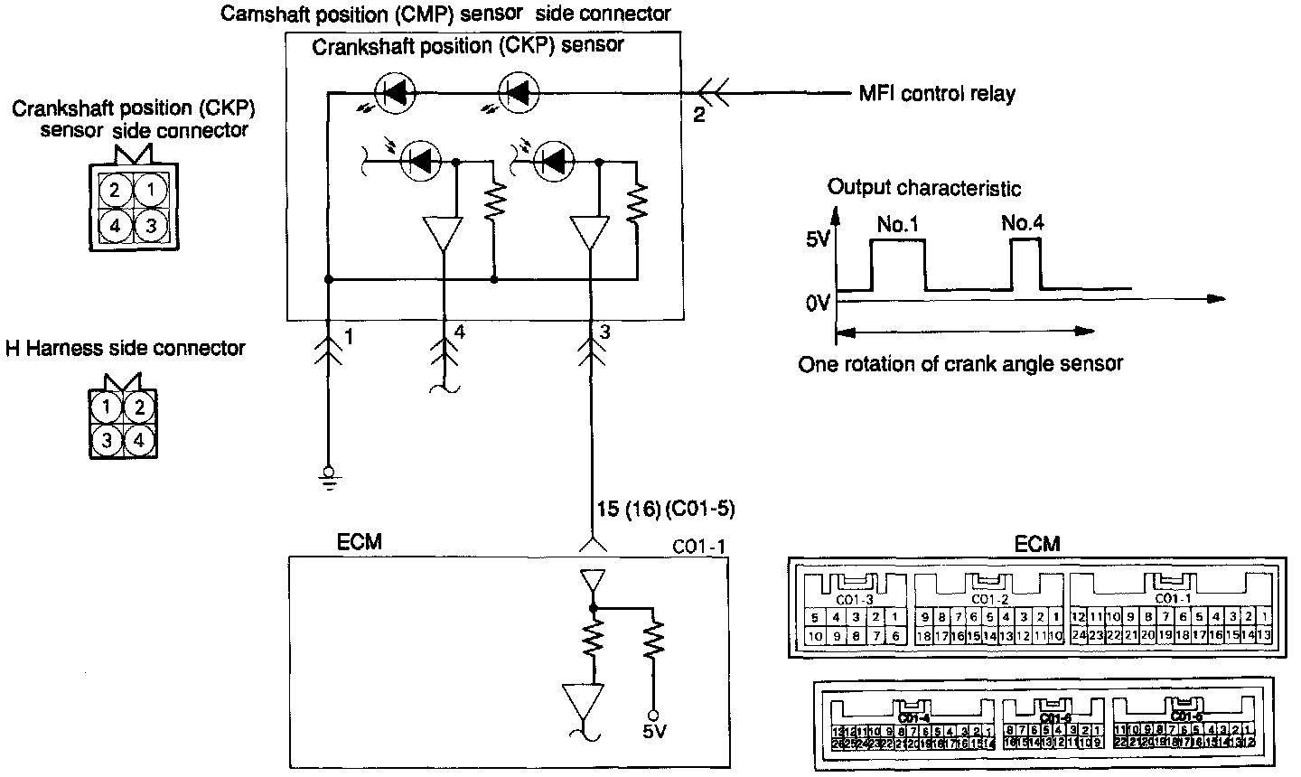 If the camshaft position sensor does not operate correctly, correct injection sequence cannot be made so that the engine may stall, run irregularly at idle or fail to accelerate normally.