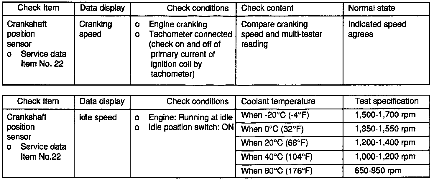 3. If the engine can be run at idle even if the crankshaft position sensor reading is out of specification, check the following: