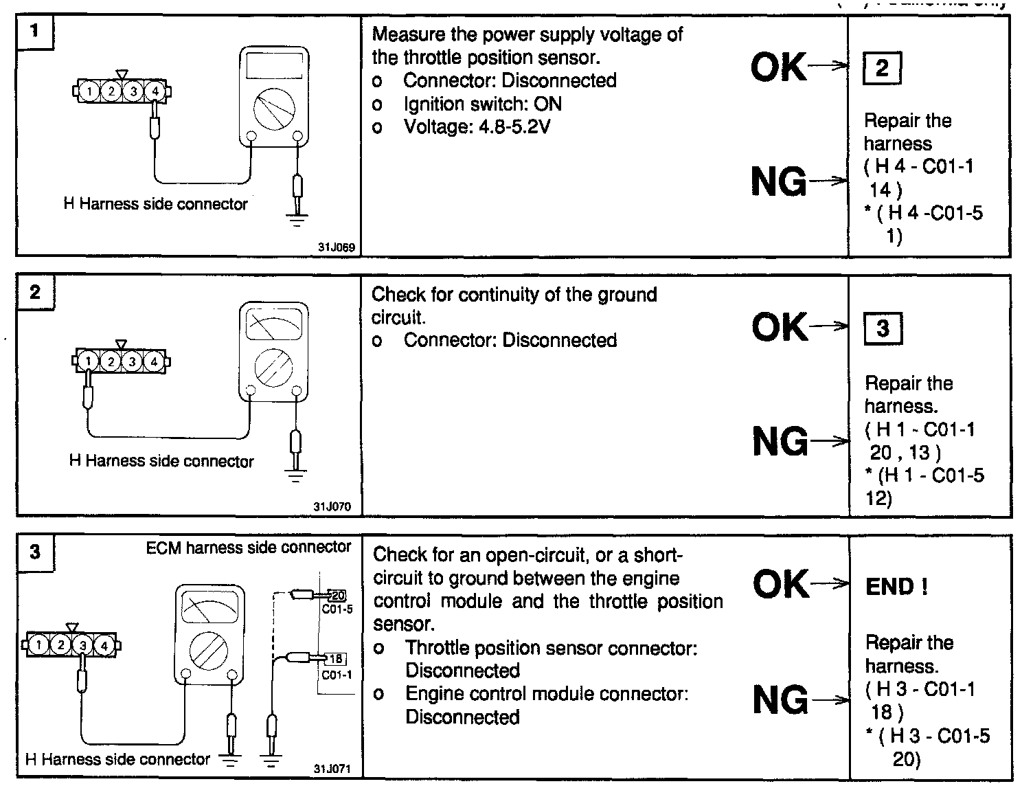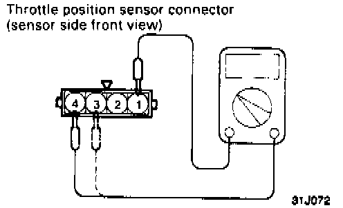 5. If the resistance is out of specification. or fails to change smoothly, replace the throttle position sensor.
