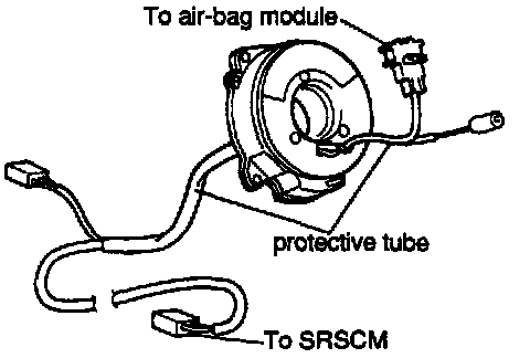 Note: If as a result of the following checks, even one abnormal point is discovered, replace the clock spring with a new one.1. Check connectors and protective tube for damage, and terminals for deformities.