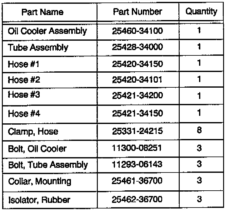 10. Install cooler hoses # 1 thru # 4 (see diagram for proper routing) and secure with hose clamps P/N 25331-24215.