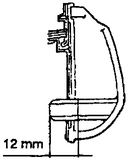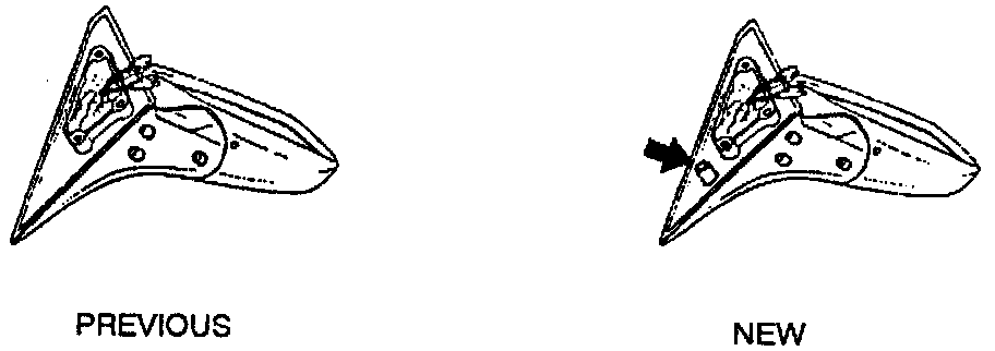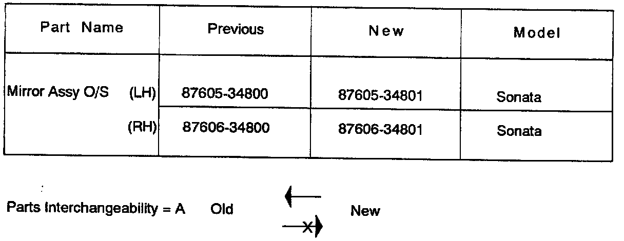 When replacing the outside mirror assembly on the 1995 Sonata produced prior to December 20, 1993, a tab will need to be removed from the replacement mirror as illustrated.