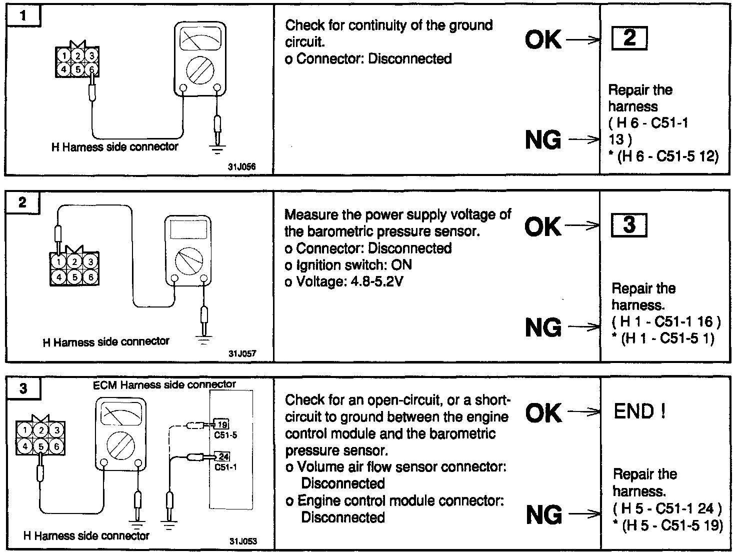 2. If the pressure of the barometric pressure sensor drops greatly during high speed driving, check the air cleaner for clogging.