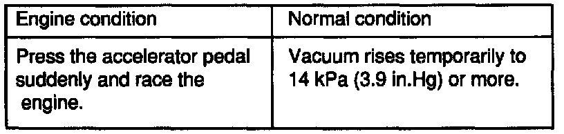3. Start the engine and check to see that, after raising the engine speed by racing the engine, vacuum rises proportionately with the rise in engine speed.