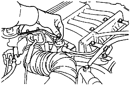 7. Disconnect the vacuum hose from the pressure regulator and plug the hose end. Measure the fuel pressure at idle.