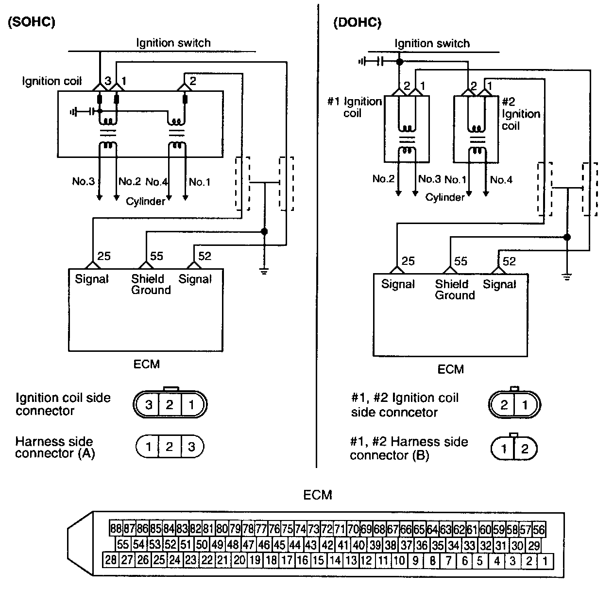 When the ignition power transistor is turned ON by the signal from the ECM, It send the signal to the ignition coil, then primary current is shut off and a high voltage is induced in the secondary coil.