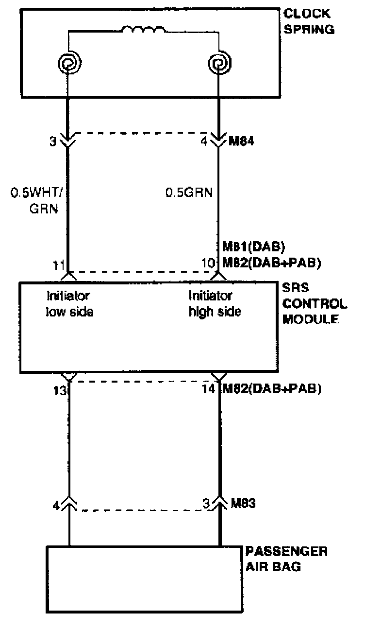 The DAB circuit consists of SRSCM, clock spring and the Air-bag module The PAB circuit consists of SRSCM and passenger air- bag module.