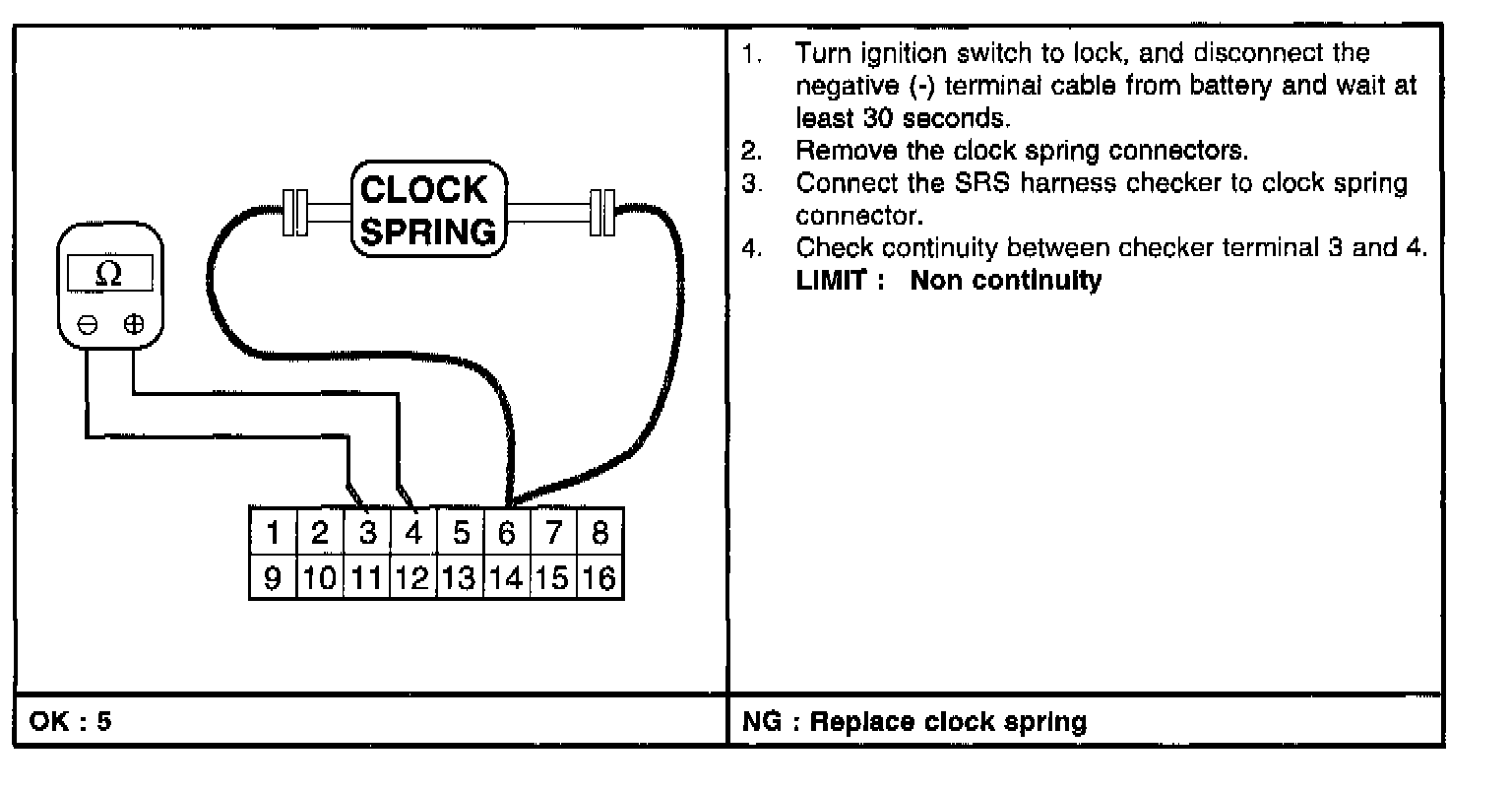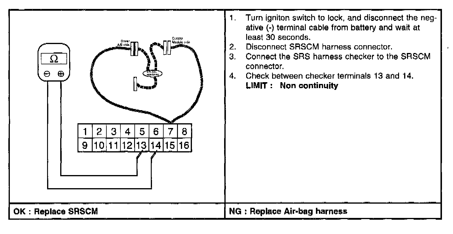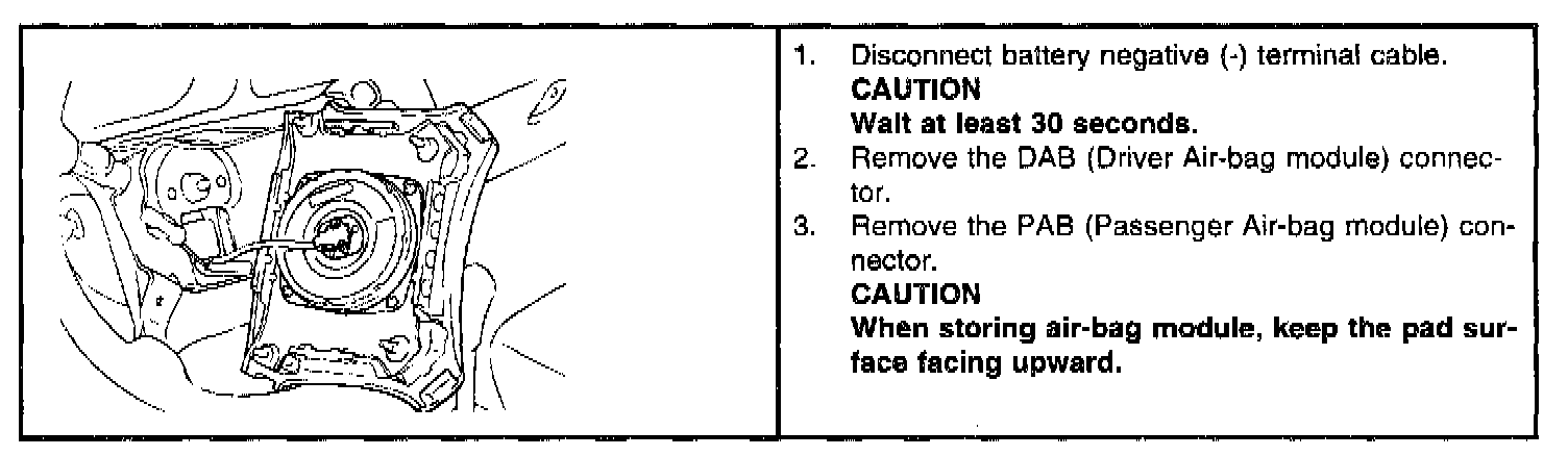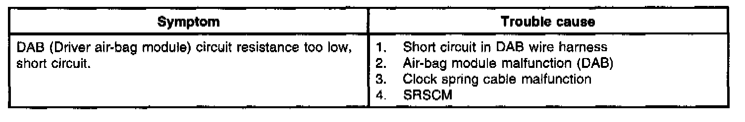 The Air-bag SRSCM measures the resistance of the DAB (Driver Air-bag module) to detect a resistance outside the allowed range. Never attempt to measure the resistance of DAB.