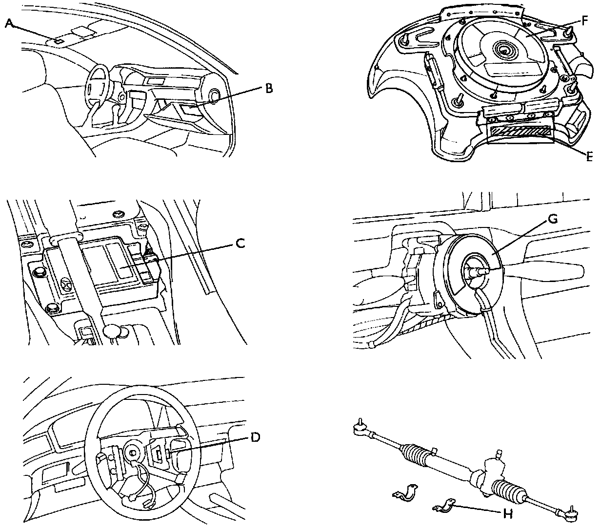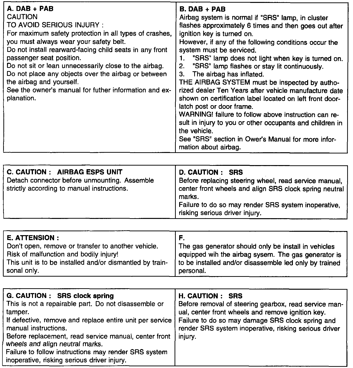 A number of caution labels relating to the SRS are found in the vehicle, as shown in the following illustration. Follow label instructions when servicing SRS.