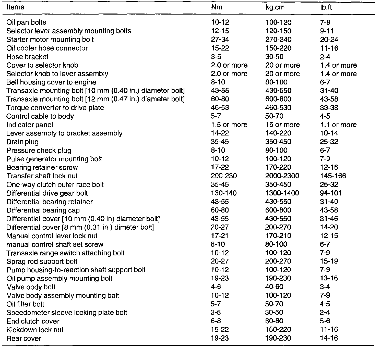 A/T Torque Data