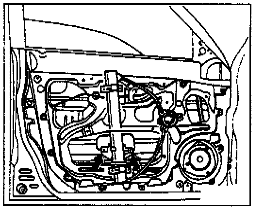 The following instructions describe removal of the front door trim only. To perform similar repairs to the rear door glass, please refer to the appropriate Accent Shop Manual.