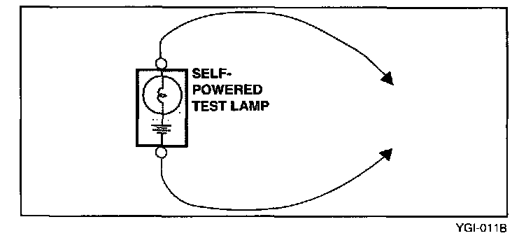 Never use a self powered test lamp on circuits that contain solid state units. Damage to these units may result.