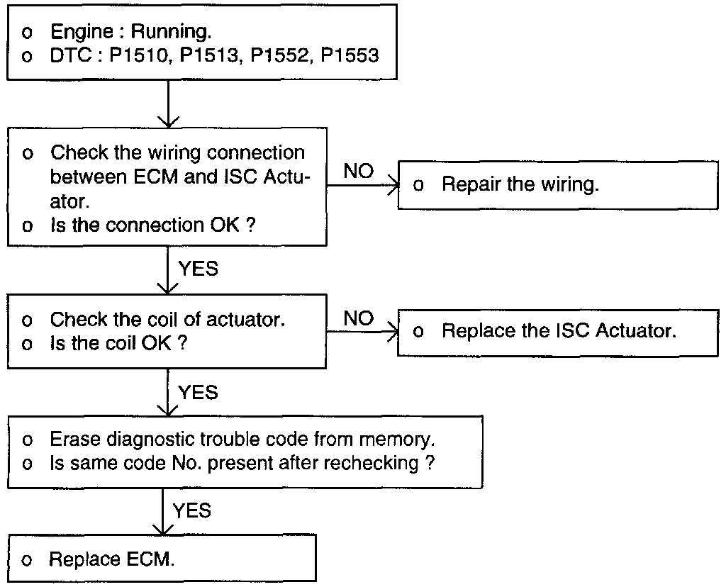 Open or short circuit is observed in idle air control system when ignition switch is turned on.