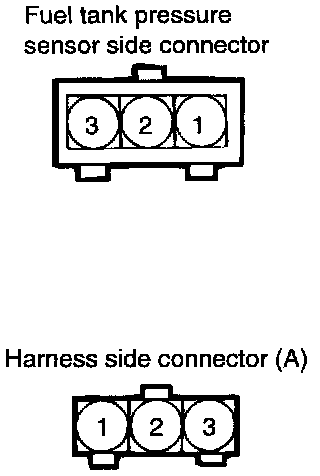 1. Prepare a voltmeter and connect it to the fuel tank pressure sensor (FTP) pins as shown.