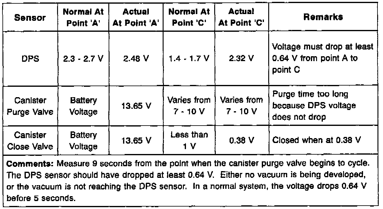 ^ Vacuum Stabilization Period - The DPS voltage should not continue to decrease 2 seconds after the purge control valve stops purging. A long stabilization period may not set a code immediately, however, it may eventually set a code.