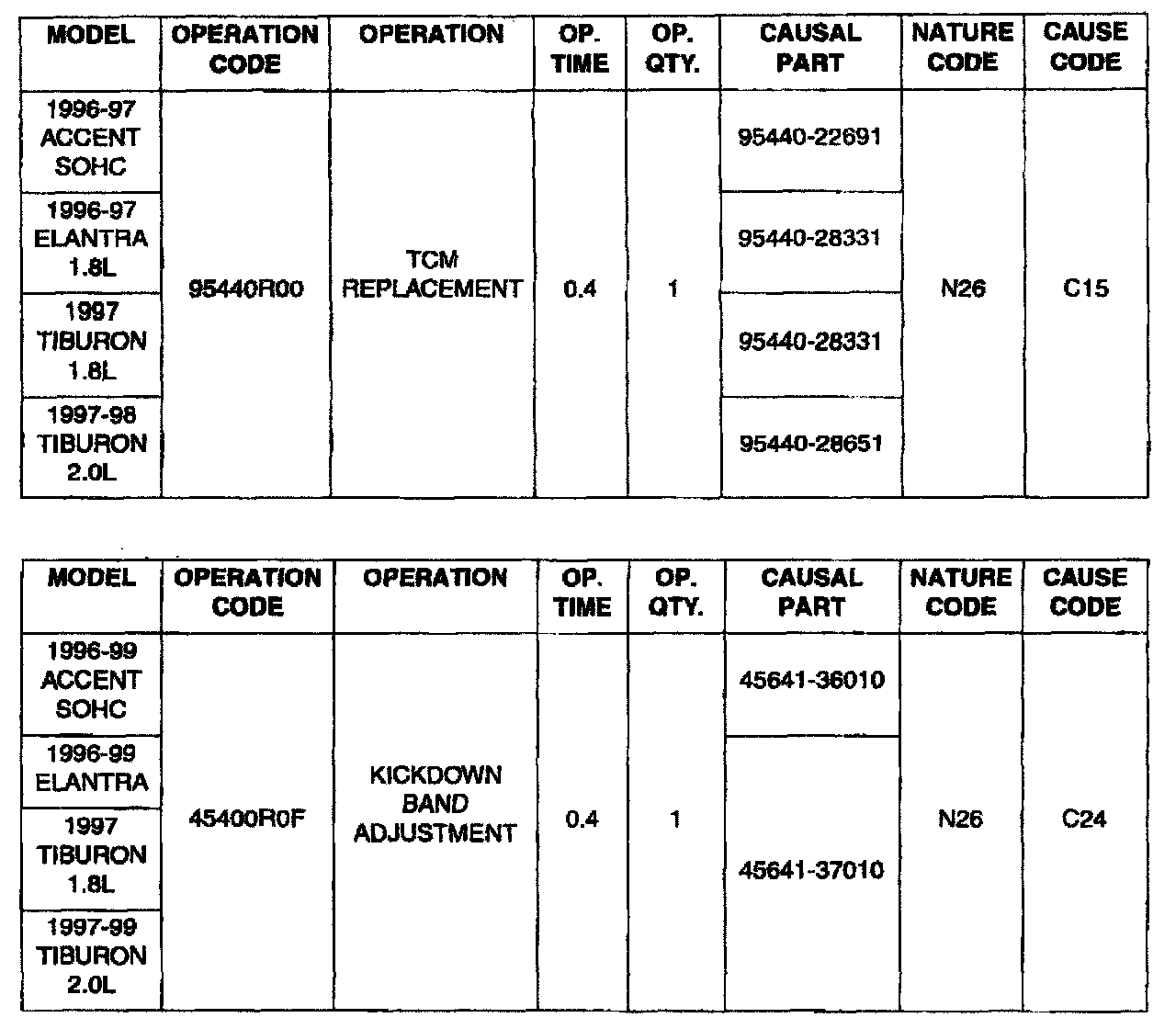 Model: 1996-98 ACCENT SOHC ELANTRA & TIBURON