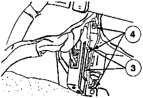 4. Using a 12 mm socket, remove three (3) 12 mm bolts which attach the TCM bracket to the toe board. Remove the bracket and TCM.