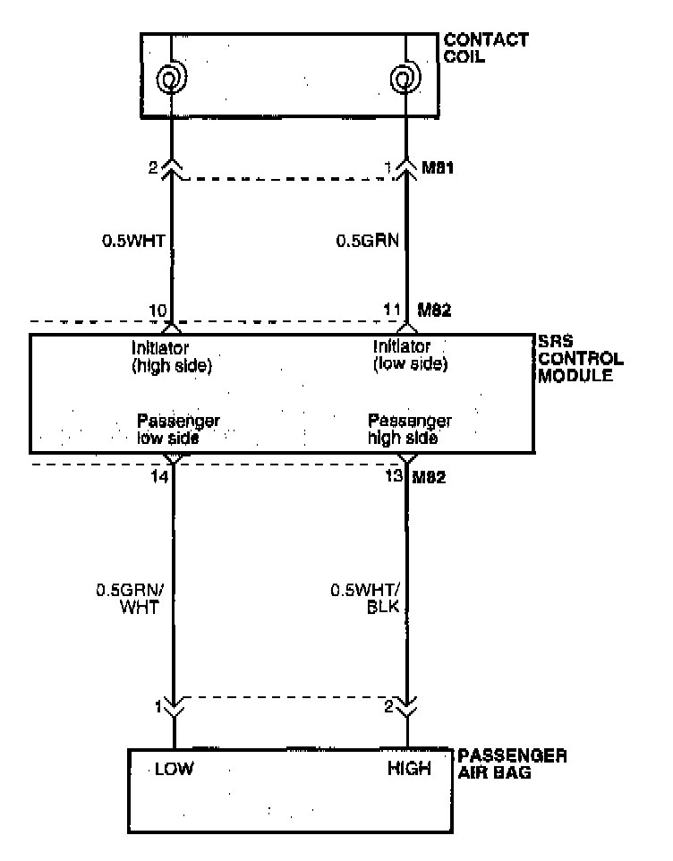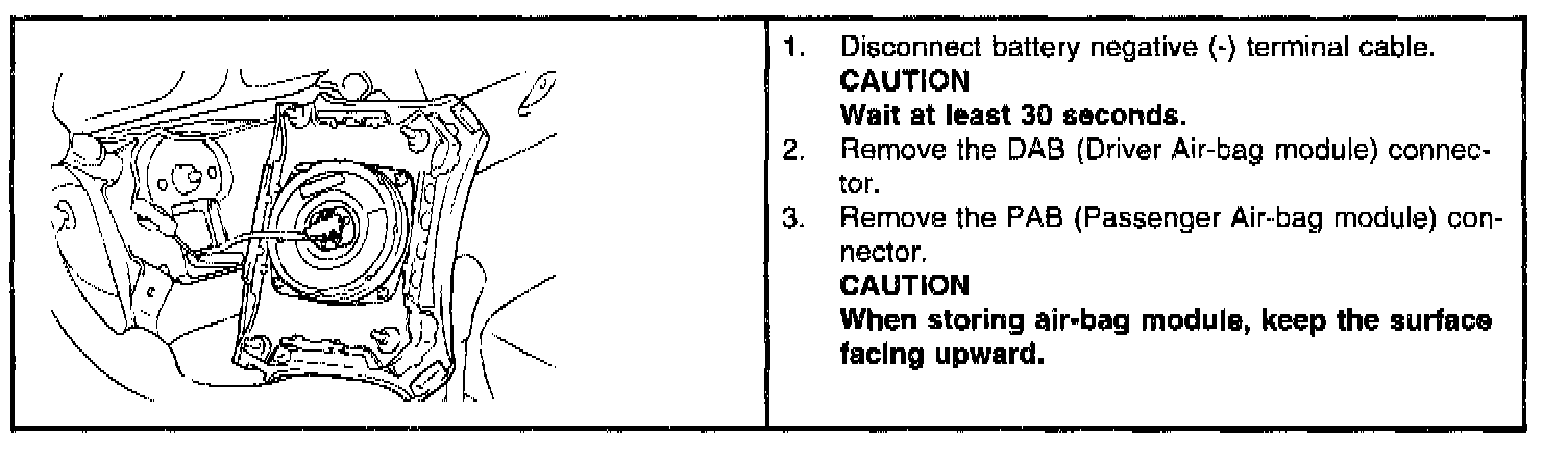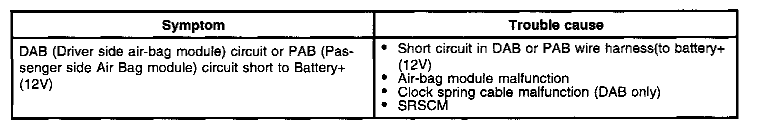 The DAB circuit consists of SRSCM, clock spring and the Air-bag module The PAB circuit consists of SRSCM and passenger air- bag module.