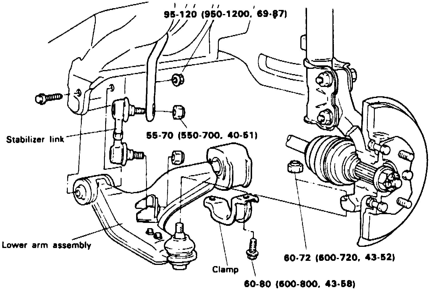 3. Remove nut or nut and bolt, then disconnect stabilizer bar from lower control arm.