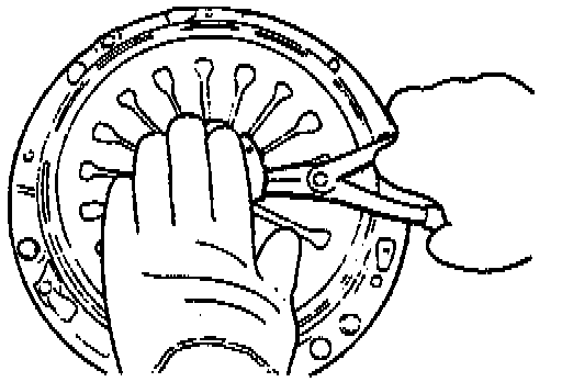 Leave clutch cover bolted on the fly wheel when removing the release bearing. This will allow the snap ring pliers, used in the next steps, to go in place easily.