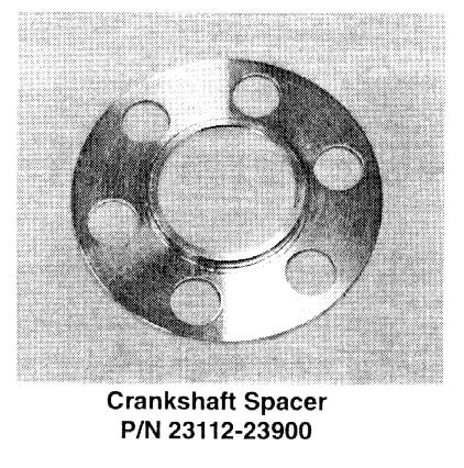 The new crankshafts are not interchangeable with the previous ones. However, a crankshaft spacer (P/N 23112-23900) can be attached to the new crankshafts to make them interchangeable with the older crankshafts.