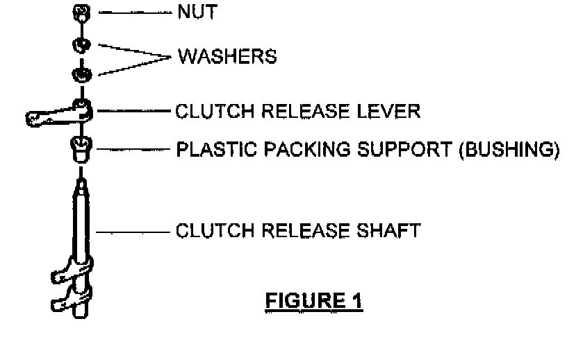If a customer complains of a "squeak" noise while applying and releasing the clutch pedal, the source of the noise may be lack of grease at the upper plastic packing support (bushing) of the clutch release shaft. The following procedure will help reduce or eliminate the "squeak" noise.