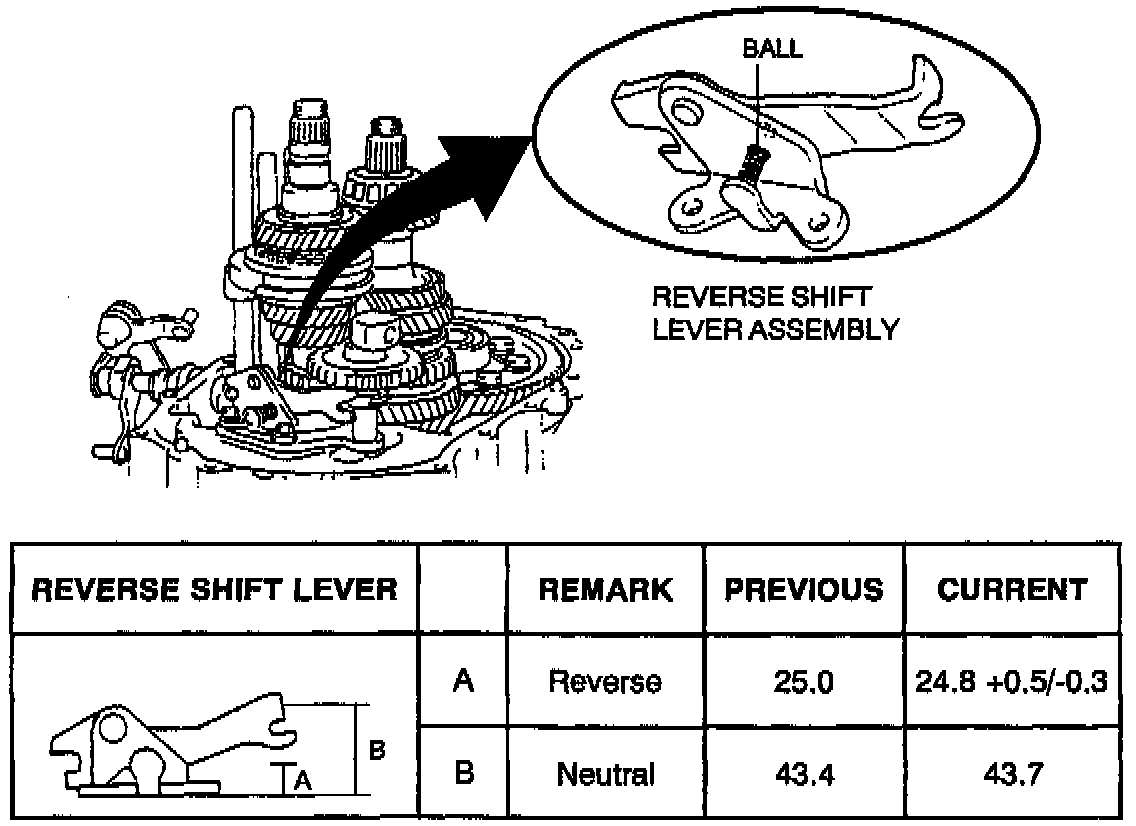 1. Lever travel in "Reverse" has been reduced from 25.0 mm to 24.8 +0.5/-0.3 mm.