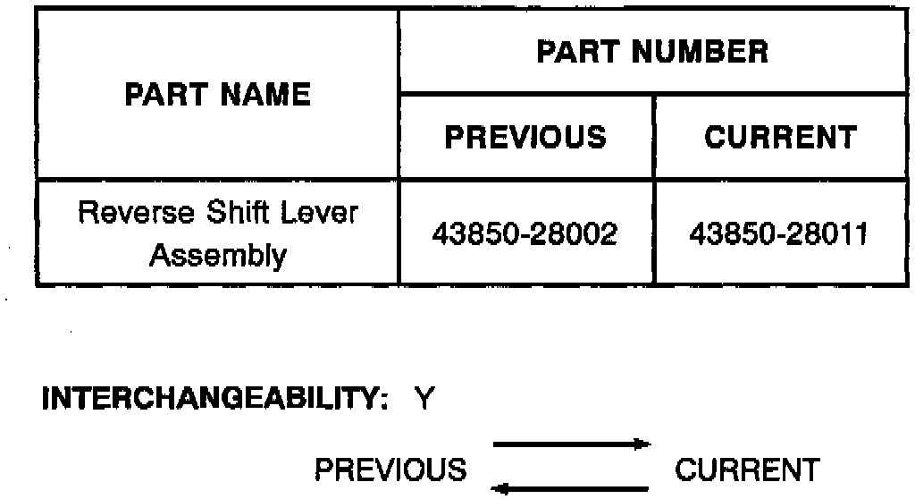 The following two (2) improvements have been applied to the reverse shift lever assembly to reduce the possibility of reverse gear "hard" shifts and gear grind noise: