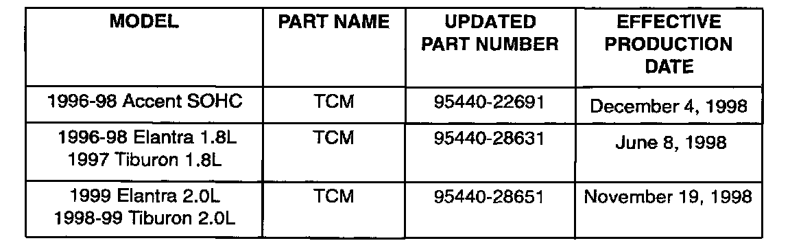 If you are servicing a vehicle with P1613 or P1614 stored in memory in the TCM, check the production date of the vehicle. If the production date is prior to the effective production date listed below, install the modified TCM.