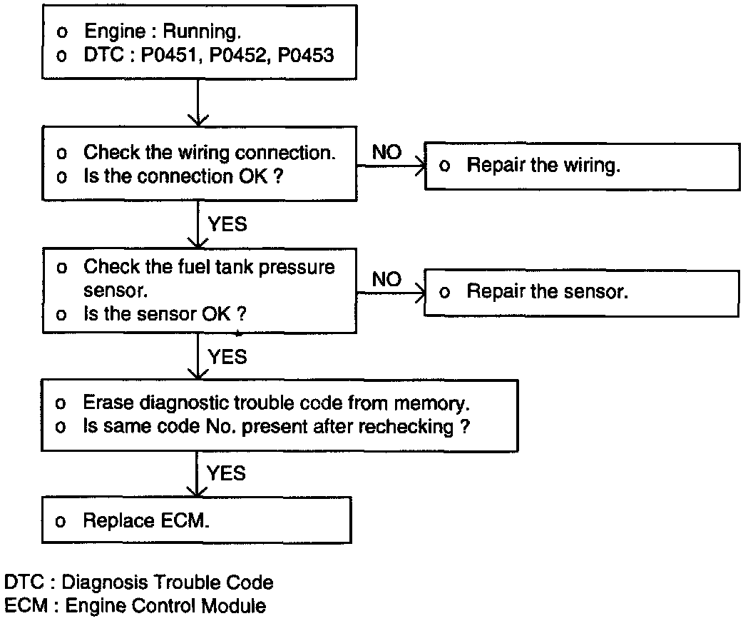 DTC P0451, P0452, P0453 - Fuel Tank Pressure Sensor: