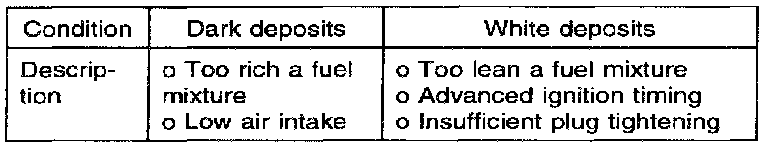 3. Check the spark plugs for the following