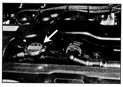 CAUTION: Make sure that the engine is cool before removing the radiator cap.